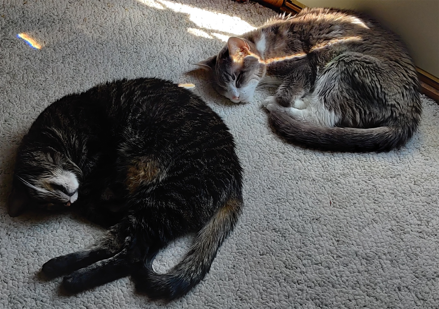 Alice and Opal were really great cats. We had them for 17 and 18 years and so they were a big part of my life. Opal was found on the street inside a cat carrier abandoned. The day we picked her up she was eating Mc Donald’s French Fries in the office of a mechanics garage (she was being looked after by the husband of the person who found her), and she loved french fries for the rest of her life. Any time we would get Mc Donald’s she would expect (and get) some fries.