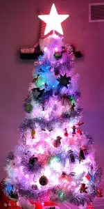 The tree is just a cheap tree from Walmart. (Other stores are available) It currently has 266 LEDs across 10 vertical levels. It is in 3 sections and the wiring allows them to be disconnected so the tree can still be taken apart for storage. The RGB LEDs are zip tied to the branches on the lower 2 sections. I was careful to position the LEDs so that the position of each LED could be mapped in software. This basically involved making sure a specific number of LEDs were on each branch and being careful that they are all positioned evenly.