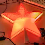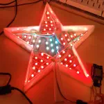 Currently has 62 LEDs. (tree + star = 328 LEDs total) I cut the star by hand using my jig saw from acrylic (32% translucent cast acrylic) and assembled it with acrylic glue.